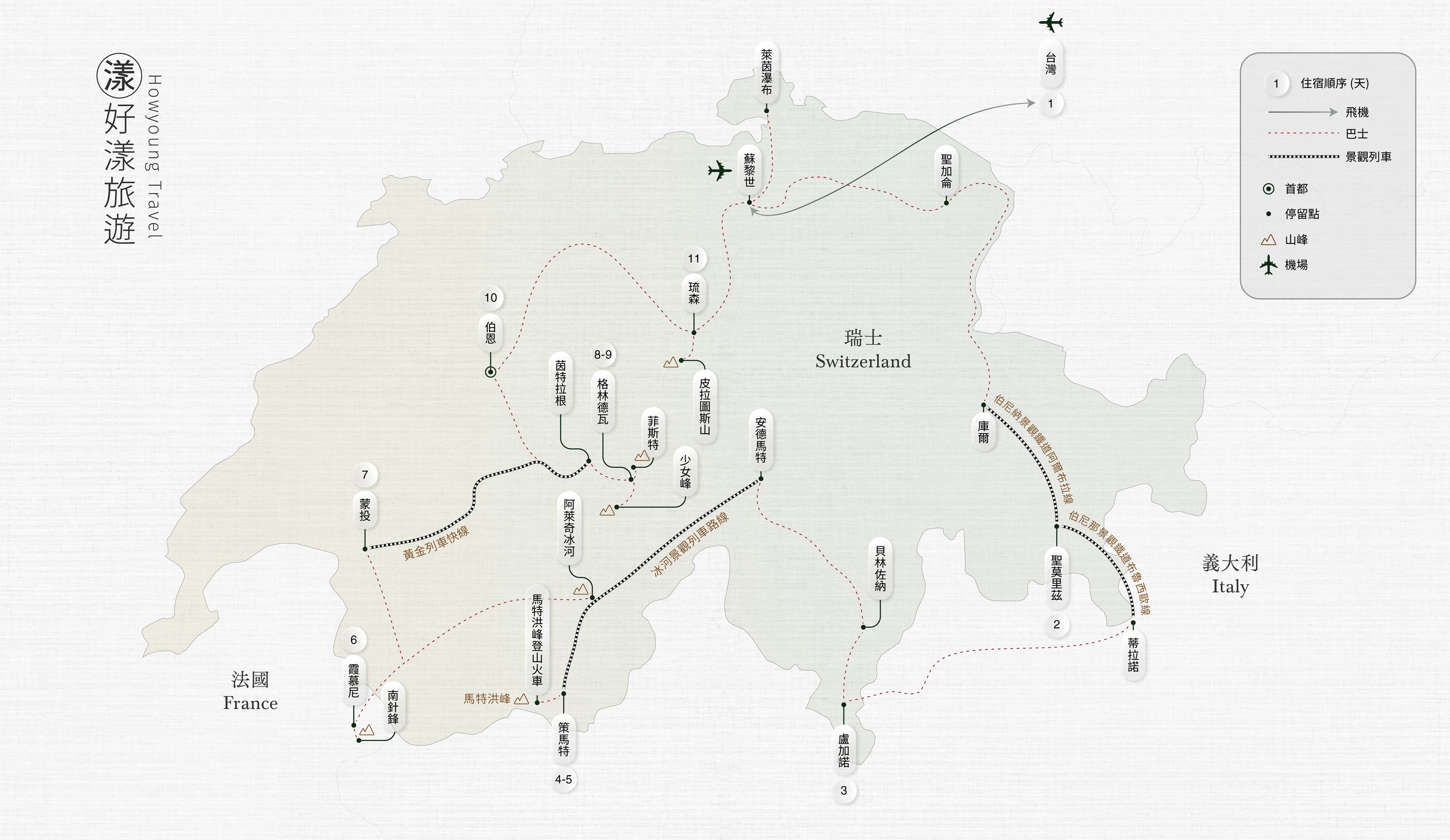 【漾旅、爵品】瑞士峰味無窮13日丨三晚五星丨三大景觀火車丨六大名峰(瑞士航空&巴士團) |